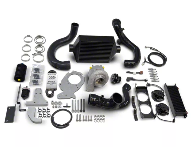 Kit Contents. To give your vehicle a major power surge, this supercharger kit consists of a supercharger unit, intake tube, MAP sensor, coolant reservoir tank with hose, overflow hose, MUA hose, flex hose, serpentine belt, air-to-air intercooler system, and all the necessary hardware.