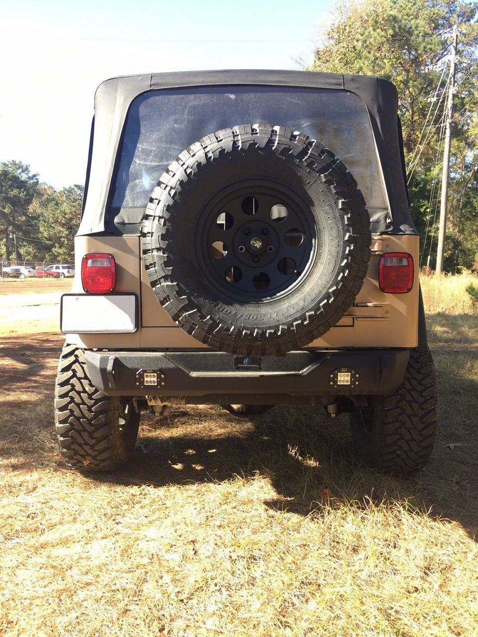 Protect Your Jeep in Style. Give your Jeep Wrangler ample rear-end protection with this Hammerhead Rear Bumper, constructed from reinforced A36 carbon steel. This extremely tough material will help guard your Jeep against the roughest off-road conditions. Safety-wise, this bumper has an integrated tailgate step, provisions for two flush-mount auxiliary lights, and D-ring mounts for winches.