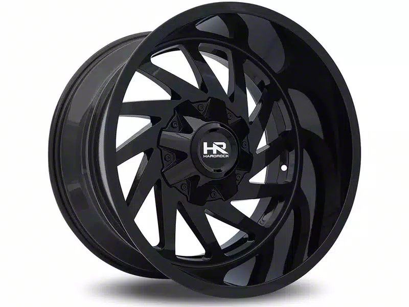 Hardrock Offroad Crusher Gloss Black 5-Lug Wheel; 20x10; -19mm Offset The Hardrock Offroad Crusher Gloss Black 5-Lug Wheel showcases a blend of race-inspired aesthetics, ideal for those seeking a premium and robust appearance. Its design complements various vehicle styles, adding sophistication.