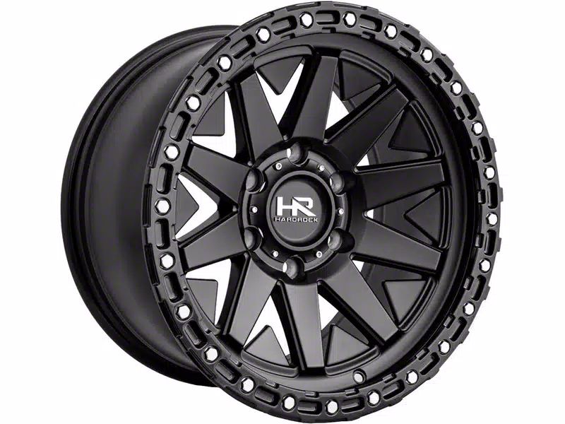 Hardrock Offroad H106 Matte Black 6-Lug Wheel; 17x9; -12mm Offset. The Hardrock Offroad H106 Matte Black 6-Lug Wheel; 17x9; -12mm Offset features a sleek and modern design that enhances the overall aesthetic of any vehicle. Its brushed gunmetal finish adds a touch of sophistication and complements various vehicle styles. This wheel's premium construction ensures durability and a robust appearance.
