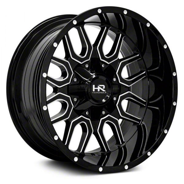 This 22x10 Hardrock Offroad Commander Gloss Black Milled 6-Lug Wheel is completed in a high-quality gloss black finish with steel milled accents that will create a striking appearance. There's a durable clear coat that protects against driving hazards.