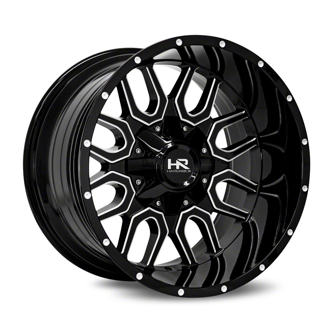 This 20x9 Hardrock Offroad Overdrive Gloss Black Milled Wheel; 20x9; 0mm Offset is completed in a gloss black finish with steel milled accents that will be the envy of everyone. For added looks and strength, there is a clear coat that protects against whatever the road throws at you.