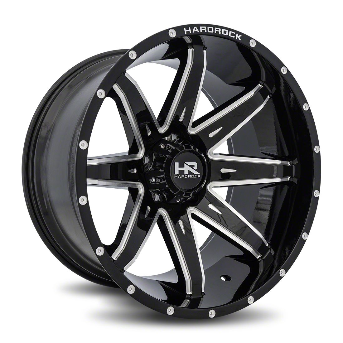 This 22x10 Hardrock Offroad Painkiller XPosed Gloss Black Milled Wheel; 22x10; -25mm Offset is completed in a gloss black finish with steel milled accents that will be the envy of everyone. For added looks and strength, there is a clear coat that protects against whatever the road throws at you.