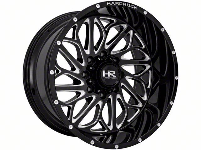 Hardrock Offroad BlackTop Xposed Gloss Black Milled 6-Lug Wheel; 20x10; -19mm Offset - This wheel's elegant design will certainly enhance your vehicle's aesthetic, complementing its luxury and performance. The unique styling of this wheel makes it an ideal choice for a standout quality of your ride, reflecting the premium quality associated with the Hardrock Offroad brand.