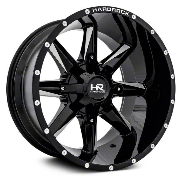 This 20x12 Hardrock Offroad Hardcore Gloss Black Milled 6-Lug Wheel is completed in a high-quality gloss black finish with steel milled accents that will create a striking appearance. There's a durable clear coat that protects against driving hazards.