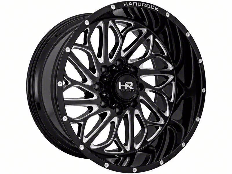 The 20x10 Hardrock Offroad BlackTop Xposed Gloss Black Milled 6-Lug Wheel is completed in a high-quality gloss black finish with mirror cut accents for a striking contrast in appearance that everyone will envy.