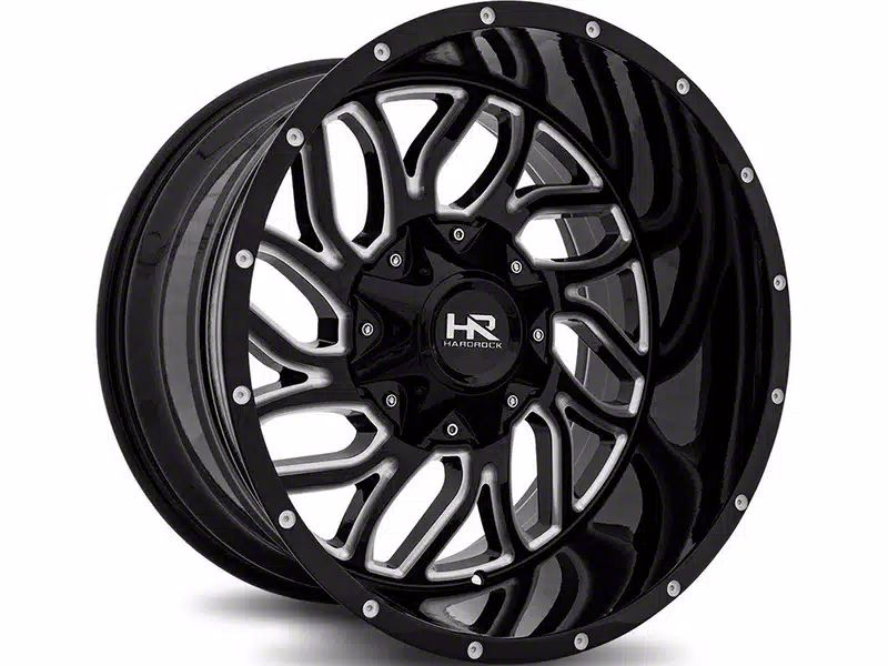 This 20x9 Hardrock Offroad Destroyer Gloss Black Milled 6-Lug Wheel is completed in a high-quality gloss black finish with steel milled accents that will be the envy of everyone. There's a durable clear coat that protects against driving hazards.