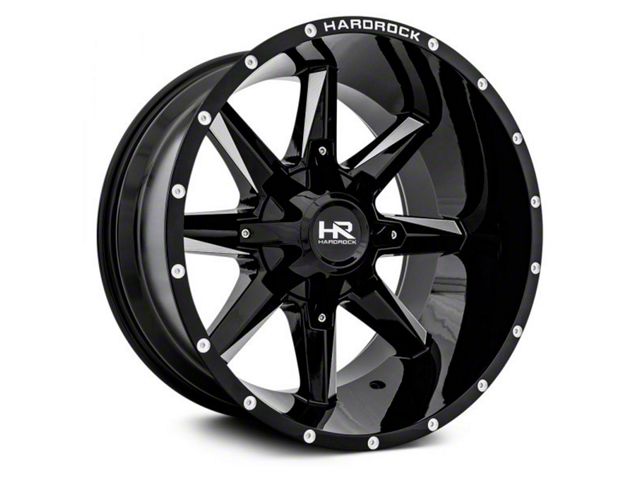 This 20x12 Hardrock Offroad Hardcore Gloss Black Milled 6-Lug Wheel is completed in a high-quality gloss black finish with steel milled accents that will create a striking appearance. There's a durable clear coat that protects against driving hazards.