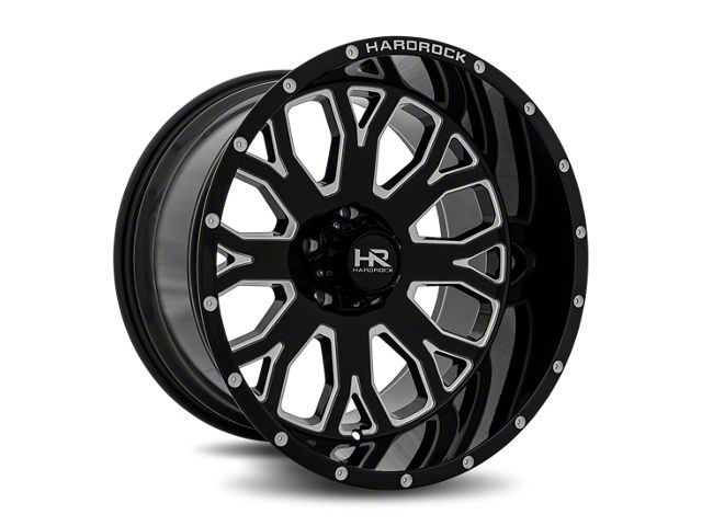 This 24x12 Hardrock Offroad Spine Xposed Gloss Black Milled 5-Lug Wheel; 24x12; -44mm Offset is completed in a high-quality gloss black finish with steel milled accents that will be the envy of everyone. For added protection and looks, there is a clear coat designed to handle whatever the road, or beyond, throws at it.