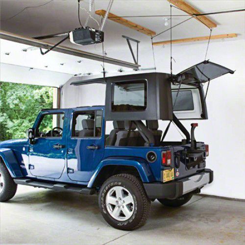 Can Handle the Weight of the Top. All of the components in this kit are made from heavy-duty materials. This ensures that your Jeep’s top will remain secure no matter how high it’s hanging from the ceiling.