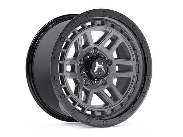 Anthracite Finish with Black Ring. This Hartes Metal Wheel is completed in a high quality anthracite finish with a black ring for an impressive appearance that everyone will envy. For added protection and good looks, this Wheel features a durable clear coat that is tough enough to stand up against the hazards of everyday driving - including road chips and pitting.