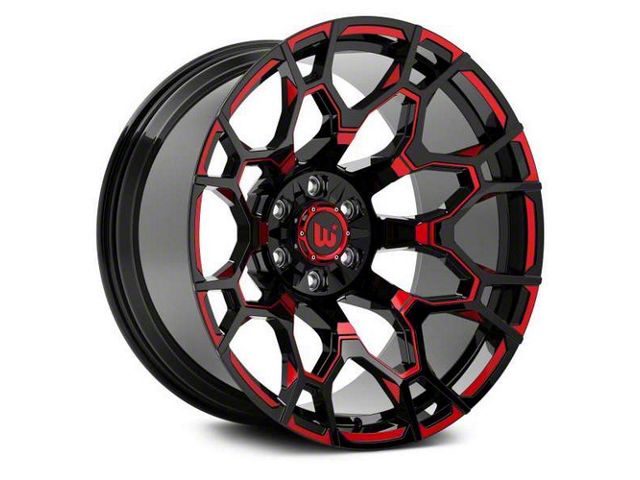 The 22x12 Hartes Metal Spur Gloss Black Milled with Red Tint Wheel is completed in a high-quality gloss black finish with milled accents. For added protection and good looks, this Wheel features a durable, matte clear coat that is tough enough to stand up against the hazards of everyday driving.