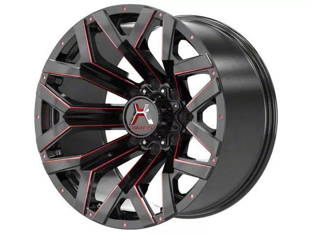 The 20x9 Hartes Metal Hawkish Gloss Black Milled with Red Tint Wheel is completed in a gloss black finish with steel milled accents and red tint for an impressive appearance. For added protection and looks, there's a durable clear coat that withstands the hazards of everyday driving.