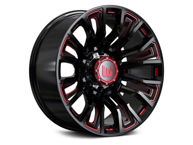 The 20x10 Hartes Metal Maverick Gloss Black Milled with Red Tint Wheel; 20x10 is completed in a high-quality gloss black finish with red accents that will make others green with envy. For added protection and good looks, this wheel features a durable clear coat that can withstand the hazards of daily driving.