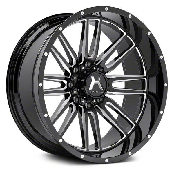 The 20x10 Hartes Metal Whipsaw Gloss Black Milled Wheel is completed in a high-quality gloss black finish with steel milled accents for an aggressive appearance. For added protection and good looks, there is a durable clear coat that withstands the rigors of everyday driving.