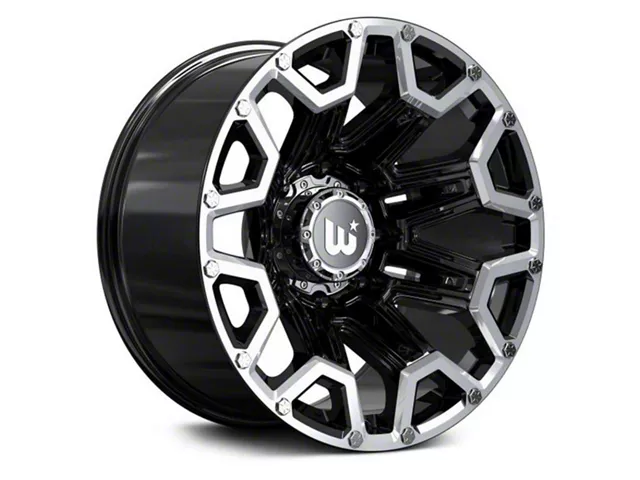 The 22x12 Hartes Metal Blaze Gloss Black Machined Wheel; 22x12 is completed in a high-quality gloss black finish with machined accents that will make others green with envy. For added protection and good looks, this wheel features a durable clear coat that can withstand the hazards of daily driving.