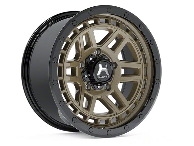 Hartes Metal Beast Matte Bronze with Black Simulated Beadlock 6-Lug Wheel; 18x9; 20mm Offset. This wheel's stunning design is a testament to Hartes Metal's commitment to aesthetic excellence. The unique style of the Beast Matte Bronze with Black Simulated Beadlock 6-Lug Wheel; 18x9; 20mm Offset not only enhances your vehicle's look but also pairs seamlessly with a variety of vehicle designs. Its focus on appearance, without altering performance, makes it a distinct choice for car enthusiasts.