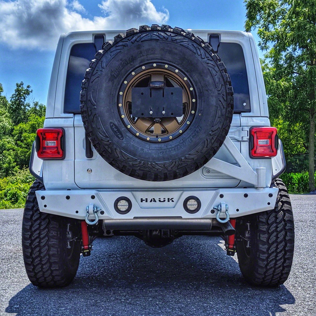 Application. This Hauk Off-Road Predator Series Rear Bumper with Tire Carrier and Gloss White powder coat finish is designed to fit 2018-2022 Jeep Wrangler JL models.