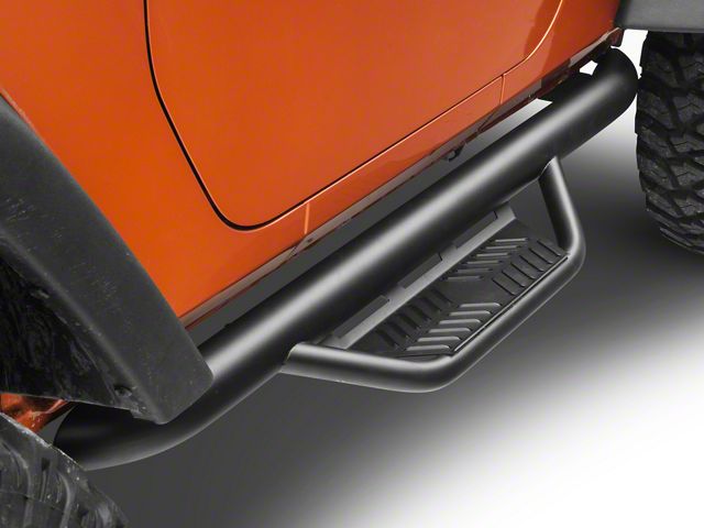 Application.These Havoc Offroad HS2 Hoop Side Step Bars in a textured black, powder-coated finish are designed to fit all 2007-2018 Jeep Wrangler JK 2-door models.