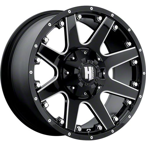 Wreak Havok. The Havok Off-Road H-102 Black Machined Wheel features modern, aggressive styling whether you're on or off-road in your Jeep Wrangler. The H-102 Wheel features the latest in styling with simulated bead lock bolts around the rim and eight wide spokes that are machined along the outer edges for an impressive accent.