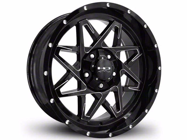 The 20x10 HD Off-Road Wheels Caliber Gloss Black Milled 6-Lug Wheel; 20x10; -25mm Offset is completed in a high-quality gloss black finish with milled accents that will make others green with envy. For added protection and good looks, this wheel features a durable clear coat that can withstand the hazards of daily driving.