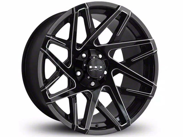 HD Off-Road Wheels Canyon Gloss Black Milled Wheel; 20x10. The HD Off-Road Wheels Canyon Gloss Black Milled Wheel offers a striking balance of style and refinement. Its unique design accentuates the vehicle's aesthetic, while the premium construction underscores its robust nature. This wheel is a perfect choice for those seeking both elegance and a strong visual statement.