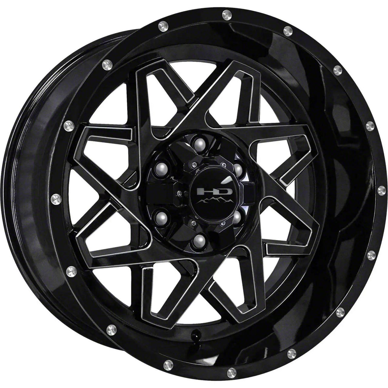 This 20x10 HD Off-Road Wheels Gridlock Gloss Black Milled Wheel is completed in a high-quality gloss black finish with steel milled accents that will make the wheel the envy of everyone. There is a durable clear coat that protects against driving hazards.