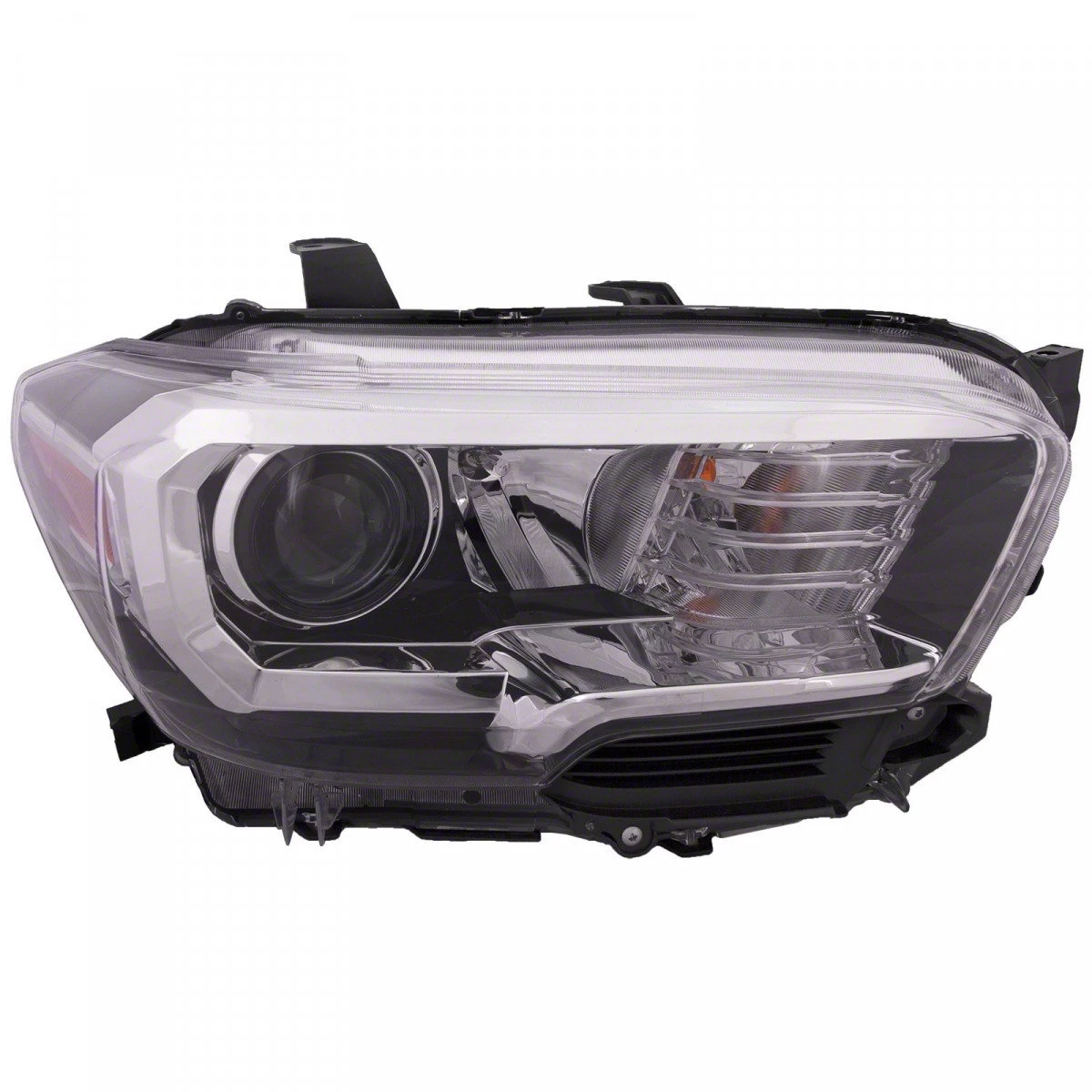 Description. DETAILS: Headlight Halogen Black Housing w/oFog Lamps w/o DRL Right Passenger Fits 2016-2017 Toyota Tacoma
