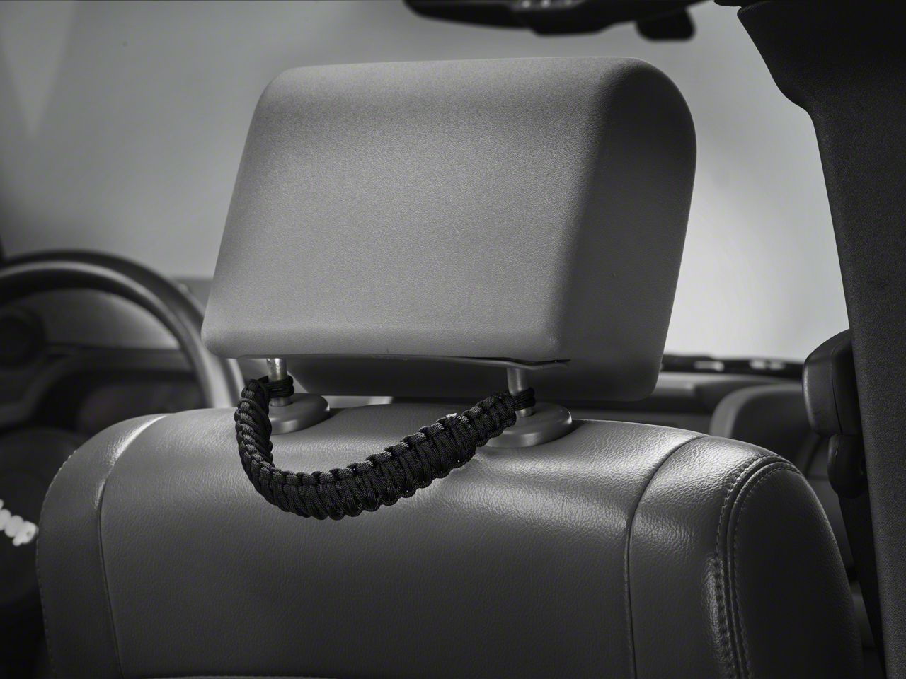 Military-Grade Grab Handles. These Black Headrest Paracord Grab Handles provide safe, simple anchoring for rear-seat passengers while you tackle extreme terrain. These Grab Handles use the same military-grade rope the US Armed Forces use to secure paratroopers' chutes and to tie down important equipment and tents in severe conditions.