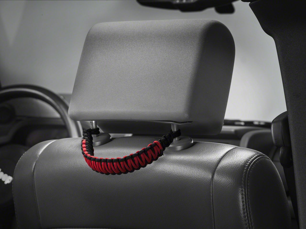 Military-Strength Grab Handles. These Black and Red Headrest Paracord Grab Handles afford your passengers a safe, rugged anchoring point that'll never rip, tear, or break. That's because these Grab Handles are constructed from 3 strands of woven Paracord, the same rope the US Military uses for paratroopers' chutes and for tying down equipment and securing tents in extreme weather.