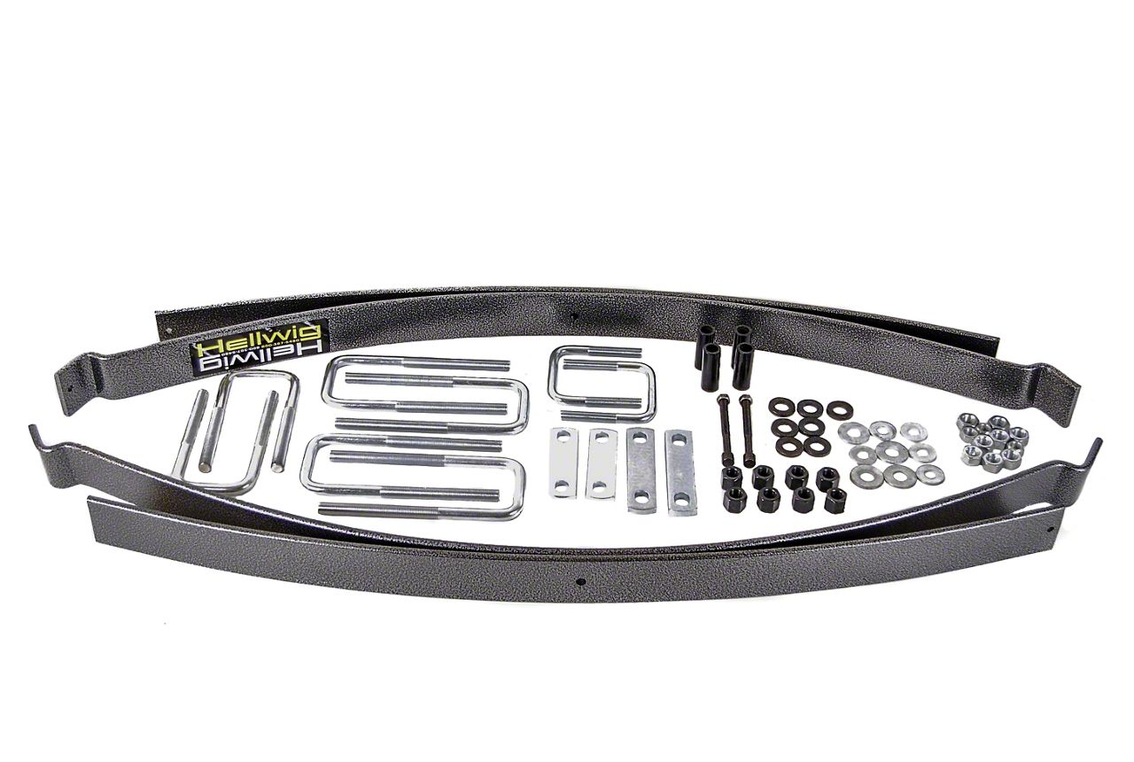 Improved Towing Capability. Made for the Nissan Titan models, this Hellwig Pro Series Helper Spring Kit comes in a textured black and polished chrome finish. Built as a tunable kit with 2 leaf helper springs, this helper spring kit has an over axle mounting design for an easier installation. This kit improves your ride’s towing capability through its load leveling capacity of up to 2500 pounds.