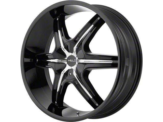 This 22x9 HELO HE891 Gloss Black with Chrome Accent 6-Lug Wheel is completed in a high-quality gloss black finish with chrome accents for a striking appearance. There's a durable clear coat to help protect against driving hazards.