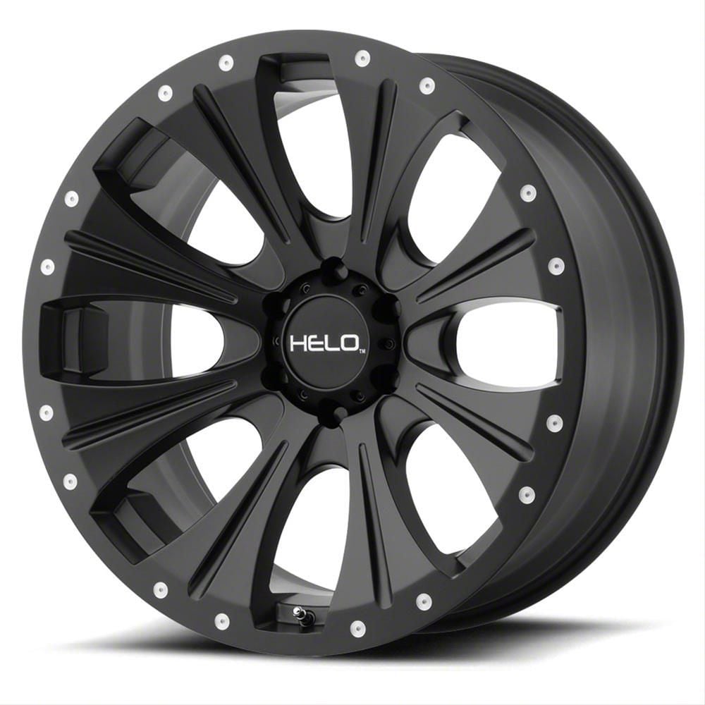 HELO HE901 Satin Black 6-Lug Wheel; 20x12; -44mm Offset The HELO HE901 Satin Black 6-Lug Wheel showcases a blend of race-inspired aesthetics, ideal for those seeking a premium and robust appearance. Its design complements various vehicle styles, adding sophistication.
