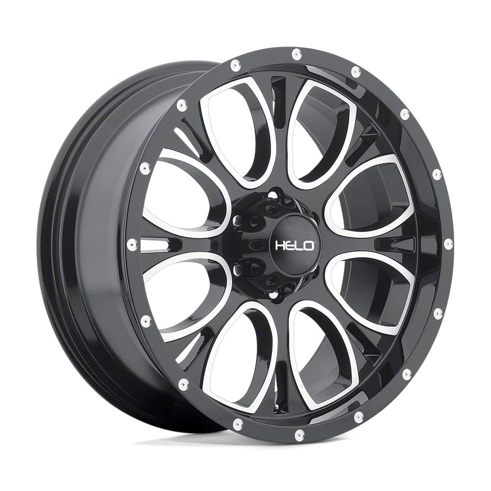 The 18x9 HELO HE879 Gloss Black Machined Wheel is completed in a high-quality gloss black finish with machined accents for an aggressive appearance that will turn heads. There is a durable clear coat that withstands the rigors of daily driving.