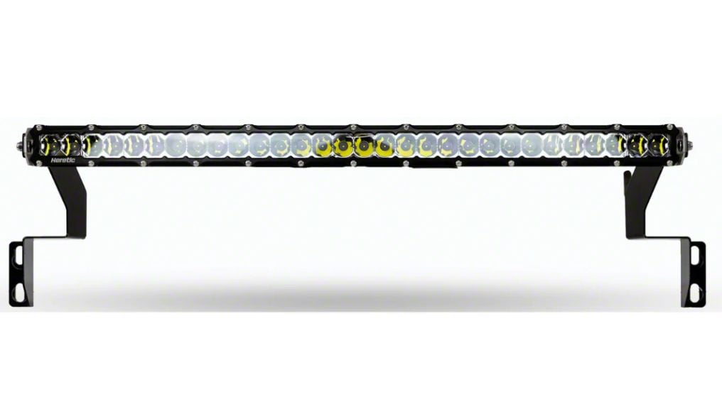 Description. The Heretic Behind The Grille 30" LED light bar - Clear Lens is the best option for your Toyota 4Runner grille. This high performance 6-series amber LED light bar is designed and manufactured in the USA, housed in CNC machined aircraft-grade aluminum, and outfitted with best-in-class circuit boards that allow temperature control and long-lasting light. This light bar is optimal for use under clear night conditions. With brackets included this becomes a 32" Behind the Grille LED Light Bar.