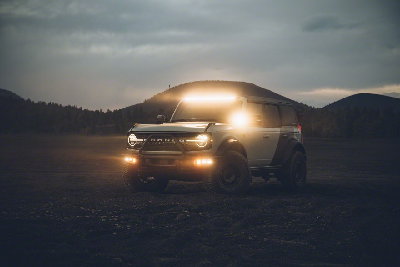 Application. This Heretic Studios 40-Inch LED Light Bar with OEM Roof Rack Mounting Kit fits 2021-2026 Ford Bronco Models.