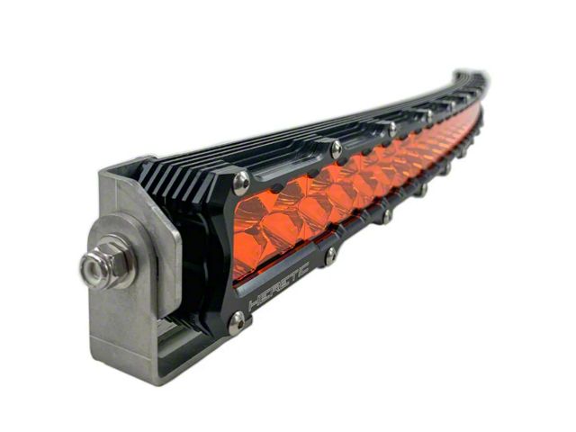 Description. The Heretic 40" Amber Curved LED light bar is a beast of a light when it comes to LED light bars. It truly turns darkness into light. This high performance 6-series curved amber LED light bar is designed and manufactured in the USA, housed in CNC machined aircraft-grade aluminum, and outfitted with best-in-class circuit boards that allow temperature control and long-lasting light. The 40” Amber Curved LED light bar is recommended for forward-facing applications in aftermarket roof racks like PRINSU and UTV roll cages. This light bar is best optimized for foggy and dusty conditions. With bracket included this becomes a 42" Amber Curved LED Light Bar.