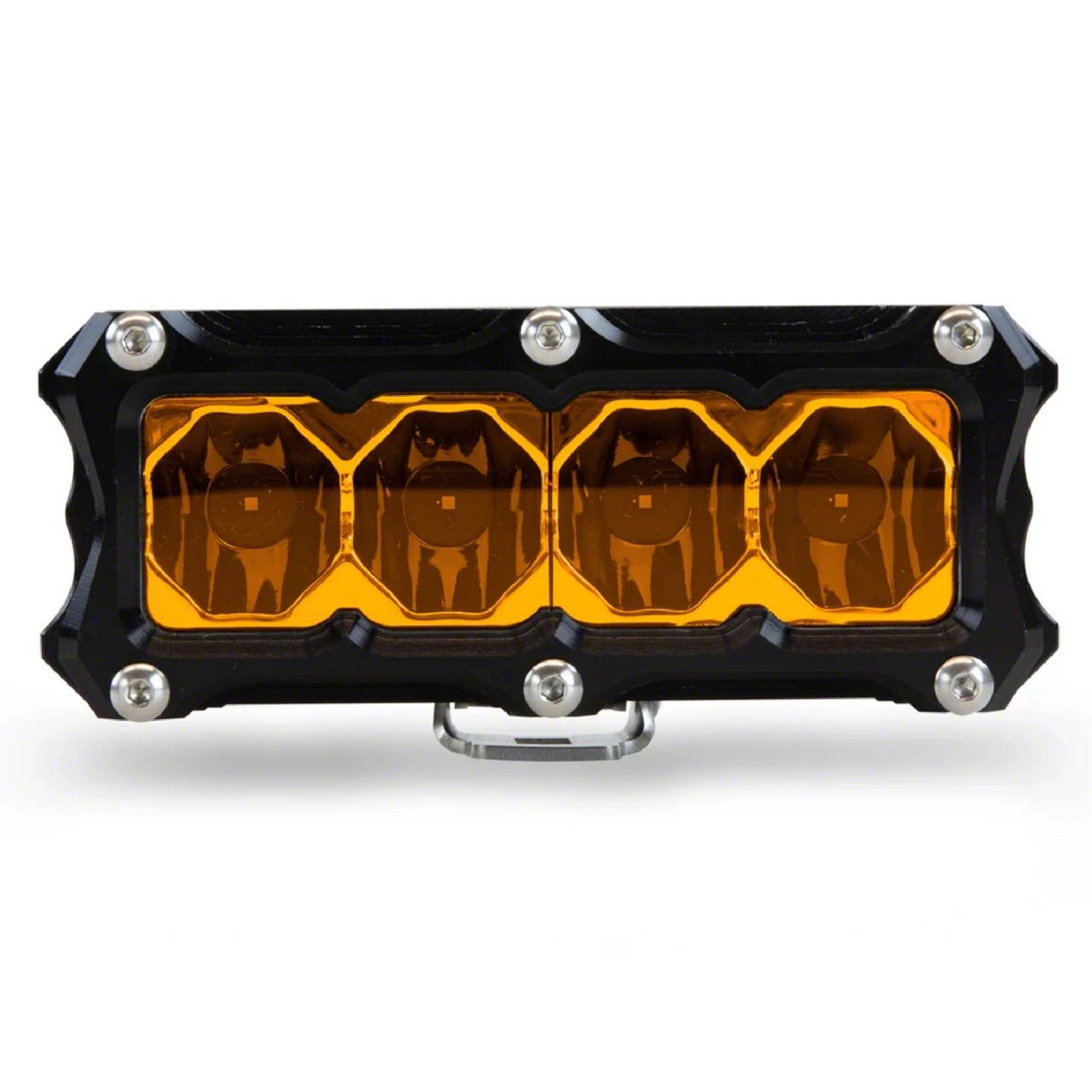Description. The Heretic BA-4 Amber LED Light Pod is known as the big brother to our staple BA-2 Amber LED Light Pod. The 6-series BA-4 Amber LED pod light is an optimal chase light to a ditch light, A-pillar light and beyond. These high performance amber LED pod lights are designed and manufactured in the USA, housed in CNC machined aircraft-grade aluminum, and outfitted with best-in-class circuit boards that allow temperature control and long-lasting light. The BA-4 Amber LED Light Pod is recommended on the front or rear bumpers of trucks, jeeps, SUVs, and UTVS. They can also be used on the sides and rear of roof racks as a chase light. These light pods are best for cutting through foggy or dusty conditions.