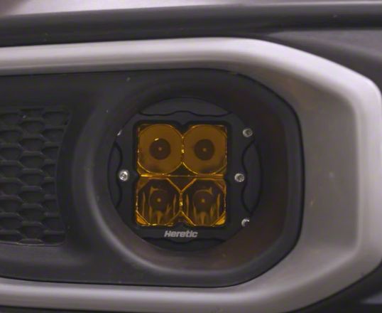 Reliable and Powerful. The Heretic Studios Series 3 LED Fog Light Kit (Spot Beam, Amber Lens) is a premium addition to your vehicle's lighting setup. This kit comprises a pair of Quattro LED light pods designed to significantly enhance visibility over stock fog lights. Crafted with precision, each light pod boasts a spot-beam pattern, guaranteeing focused and powerful illumination on the road ahead.