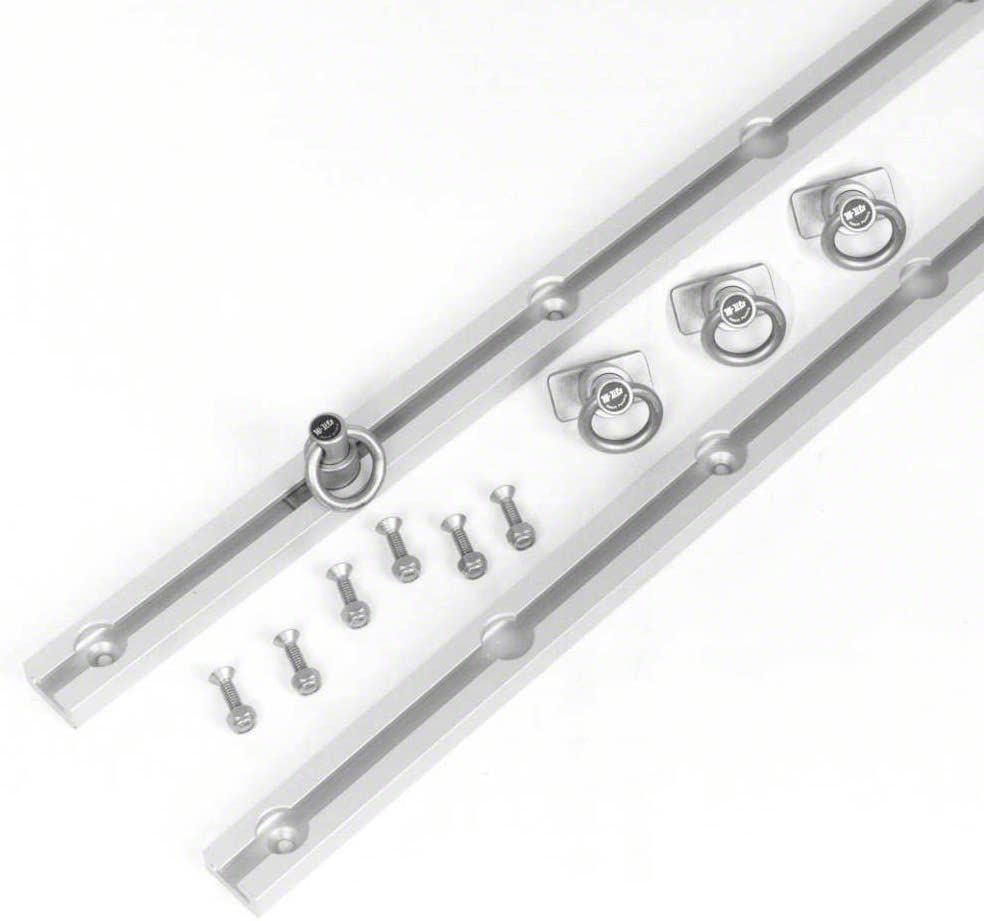 Rugged Construction. The Jeep Wrangler Slide-N-Lock Tie Down System is built using a combination of durable steel and 6061-T6 Aluminum. The aluminum is used for the rails themselves, which are 68 inches long and have an anodized finish. This finish protects the rails from corrosion and is integrated into the aluminum substrate, which means it can’t peel off. The steel is used for the sliding tie points, ensuring your system stays in place no matter the conditions or the bumps along your way.