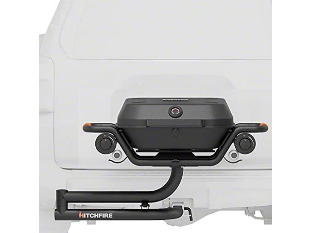 Mobile Grilling. Made for a universal fit, this HitchFire Forge 15 Propane Hitch Mounted Grill was made to be a mobile-mounted grille. Mounted on a pivoting swing arm, this grille has a cooking area of 18 by 22 inches which can feed 8 to 10 people.