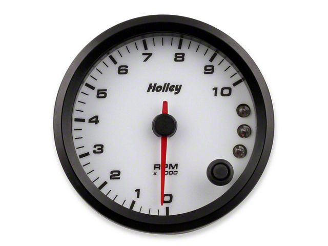 Accuracy and Functionality. Holley Performance lets you monitor the rate of your 4Runner engine’s crankshaft with this White 3-3/8-Inch Analog-Style Tachometer with 0-10,000 RPM range. The gauge displays the revolutions per minute (RPM) on a calibrated 240-degree sweep analog dial with white face and black markings for easy reading at a glance. It is equipped with an internal microprocessor to ensure accurate pointer movement in street and racing conditions.