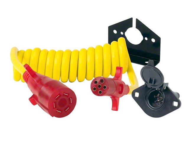 Reliable Trailer Connector Adapter. The Endurance Flex-Coil Nite-Glow 7-Blade to 6-Round Adapter ensures seamless trailer-to-vehicle connectivity by adapting a standard 7-blade RV-style plug to a 6-round trailer connection. Designed for reliability and convenience, it maintains full functionality of essential trailer lighting and braking systems.