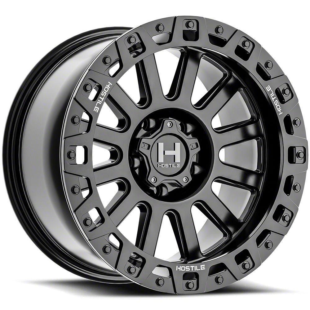 Hostile Dominator Asphalt 6-Lug Wheel; 20x9; 1mm Offset offers a sleek and assertive aesthetic that enhances a vehicle's visual presence. Its gloss black finish amplifies the appeal, making it a great match for bold styling themes. This wheel brings a refined edge to any build while maintaining a confident stance on the road. Crafted to elevate the appearance of a wide range of vehicles.