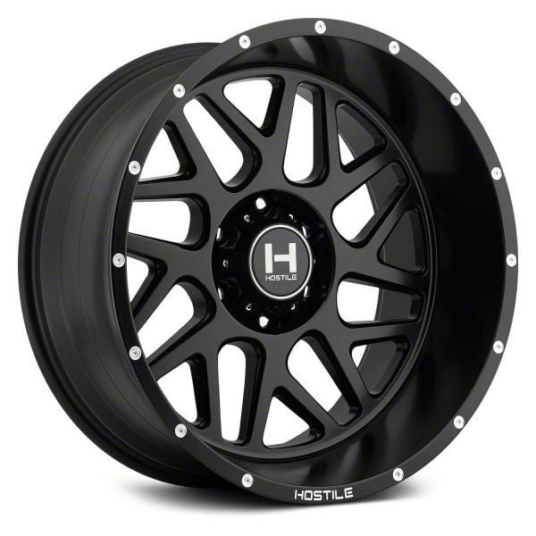 Hostile Sprocket Asphalt 6-Lug Wheel; 22x10; -25mm Offset offers a striking balance between style and durability. The design speaks to the brand's commitment to quality, enhancing the vehicle's appearance with its distinct look. This wheel, with its unique aesthetics, is ideal for drivers who appreciate a blend of modern design and robust functionality.