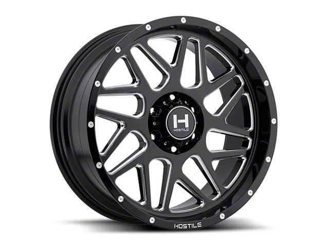 The 22x14 Hostile Sprocket Blade Cut 6-Lug Wheel is completed in a high-quality gloss black finish with steel milled accents for an aggressive appearance. For added protection and good looks, there is a durable clear coat that withstands the rigors of everyday driving.
