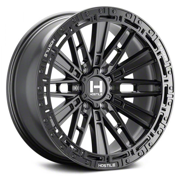 Hostile Mojave Asphalt 6-Lug Wheel; 17x9; 0mm Offset exudes sophistication with its finish, offering a sleek and modern appeal to any vehicle it adorns. The design is meticulously crafted to enhance the aesthetic of your vehicle, giving it a distinctive and upscale look. Perfect for those seeking to elevate their vehicle's style, this wheel blends seamlessly with both contemporary and classic vehicle designs, making it a versatile choice for a wide range of vehicles. Its robust construction ensures durability, making it a reliable choice for drivers who value both style and quality.