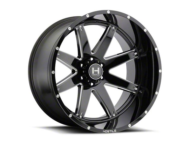 The 20x12 Hostile Alpha Blade Cut 5-Lug Wheel is completed in a high-quality gloss black finish with steel milled accents for an aggressive appearance. For added protection and good looks, there is a durable clear coat that withstands the rigors of everyday driving.