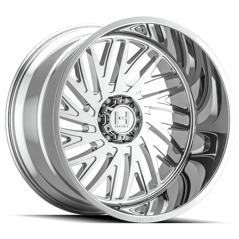 The 24x14 Hostile Syclone Armor Plated 6-Lug Wheel is completed in a high-quality chrome finish that is accomplished in a 3-step plating process. First layer is copper, which creates a smooth foundation. Next is nickel for hardness and durability. Finally, chrome for brightness.