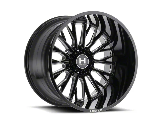 The 22x14 Hostile Fury Blade Cut 6-Lug Wheel is completed in a high-quality gloss black finish with steel milled accents for an aggressive appearance. For added protection and good looks, there is a durable clear coat that withstands the rigors of everyday driving.